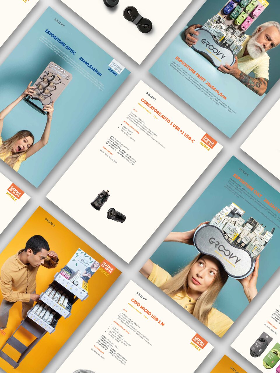 IL PROGETTO GRAFICO DEL NUOVO CATALOGO GENERALE GROOVY, AZIENDA ATTIVA NEL SETTORE DEGLI ACCESSORI PER LA TELEFONIA, REALIZZATO DAL DIPARTIMENTO COMMUNICATION DEL NOSTRO STUDIO, SI CARATTERIZZA PER UN LINGUAGGIO ACCATTIVANTE E DINAMICO, CAPACE DI ESPRIMERE IN MODO IMMEDIATO L’IDENTITÀ AZIENDALE, IN PIENA COERENZA CON LA SUA IMMAGINE COORDINATA.