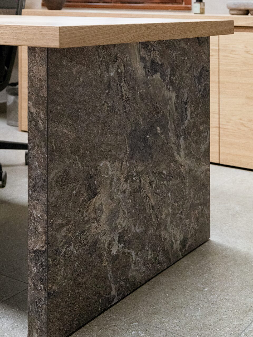 ABBIAMO INOLTRE REALIZZATO QUADRI OTTENUTI DA IMMAGINI CON SCATTI FOTOGRAFICI CHE RACCONTANO I PROCESSI DI LAVORAZIONE DEL GRÈS PORCELLANATO, CHE RESTITUISCONO UNO STORYTELLING VISIVO CAPACE DI RACCONTARE I PRODOTTI E LA STORIA DELL’AZIENDA, E CURATO LA SELEZIONE DEGLI ACCESSORI DECORATIVI SCEGLIENDO PEZZI DI DESIGN ICONICI COME LA LAMPADA FLOWERPOT PROGETTATA DA VERNER PANTON E IL VASO IKEBANA DISEGNATO DA JAIME HAYON.